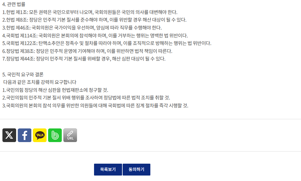 헌법과 법률을 유린한 국민의 힘 정당 해산에 관한 청원 동의 바로가기 참여 방법 안내를 드리겠습니다.