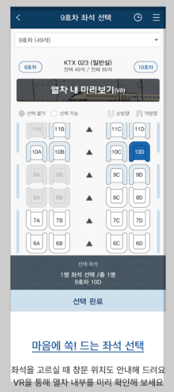 - 예약 가능한 좌석을 확인한 후, 선택하여 예약을 마무리합니다.